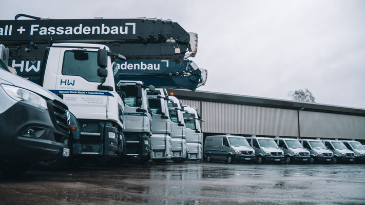 Sicherheit und Termintreue durch eigenen Fuhrpark. Dadurch kann die Modulgröße der Elemente optimal ausgenutzt werden und der möglichst hohe Anteil an Vorfertigung ab Werk gewährleistet werden.