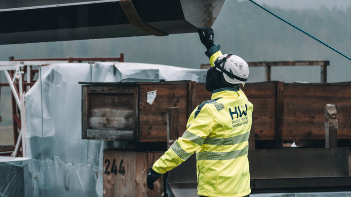 Montage mit eigenen geschulten Montageteams und Bauleitern bzw. Obermonteuren als kompetente Ansprechpartner vor Ort. Einsatz eigener Teleskopkräne und Transportgeräte.