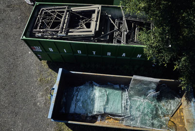 Beim Evangelischen Campus Nürnberg führen wir derzeit den kontrollierten Rückbau der bestehenden Aluminium-Glas-Fassade durch. Dabei trennen wir sämtliche Materialien – insbesondere Aluminiumprofile und Glas – sauber und sortenrein. Auf diese Weise stellen wir sicher, dass alle Komponenten ohne Qualitätsverlust recycelt und direkt wieder in den Wertstoffkreislauf zurückgeführt werden können.